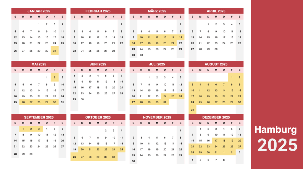 Ferien Hamburg 2025 – Schulferien und Feiertage im Überblick