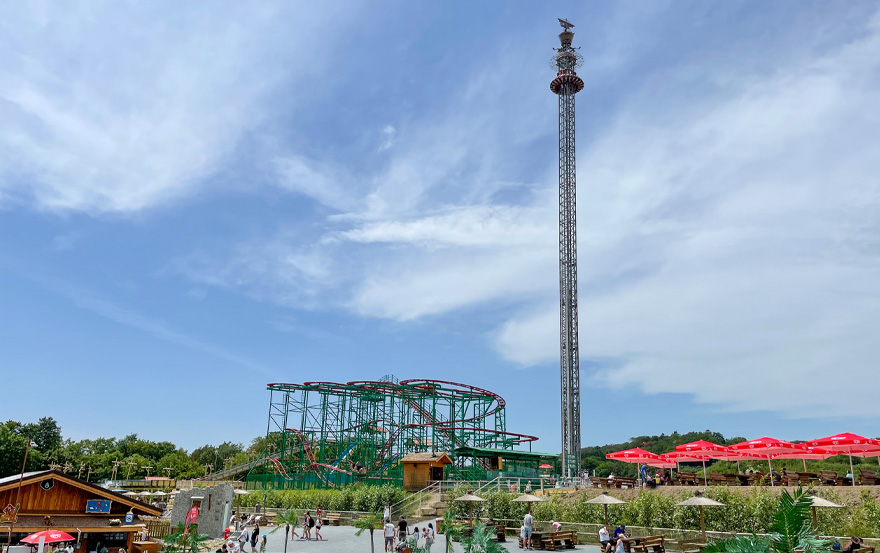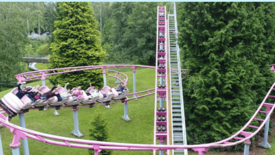 Nach den Tieren wartet der Vergnügungspark-Teil mit vielen Attraktionen für Kleinkinder. Eine gemütliche Kindereisenbahn dreht ihre Runden durch die Landschaft, es gibt ein Kinderkarussell, trampolinartige Hüpfkissen und kleine Rutschen. Sogar eine erste Achterbahn für Kids ab etwa 3 Jahren ist vorhanden (selbstverständlich nur in Begleitung).