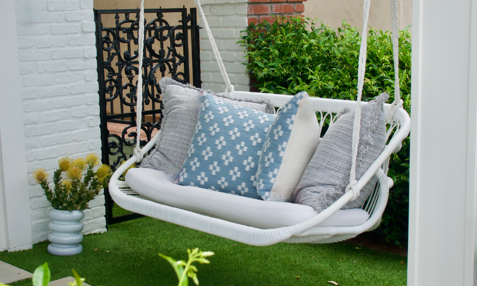 - Pflanzen einbeziehen: Umgeben von Blumen oder Kräutern wird die Hollywoodschaukel zum echten Gartenparadies
